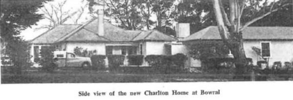 This is a photo of the Charlton Boys’ Home at Bowral. It shows a large single-storey house surrounded by trees and gardens. The caption published with the image reads “Side view of the new Charlton Home at Bowral”. This photo is undated – the date included is an estimate.