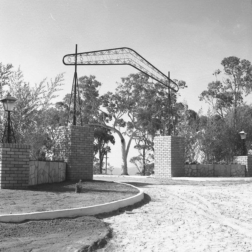 This is a photograph of the sign at the front of Mount Penang. It shows a metal sign that reads “Mt Penang Boys Training School” mounted on a brick or stone wall. This photograph is part of a collection of photographs from children’s Homes and Institutions held by the NSW Department of Community Justice. This…
